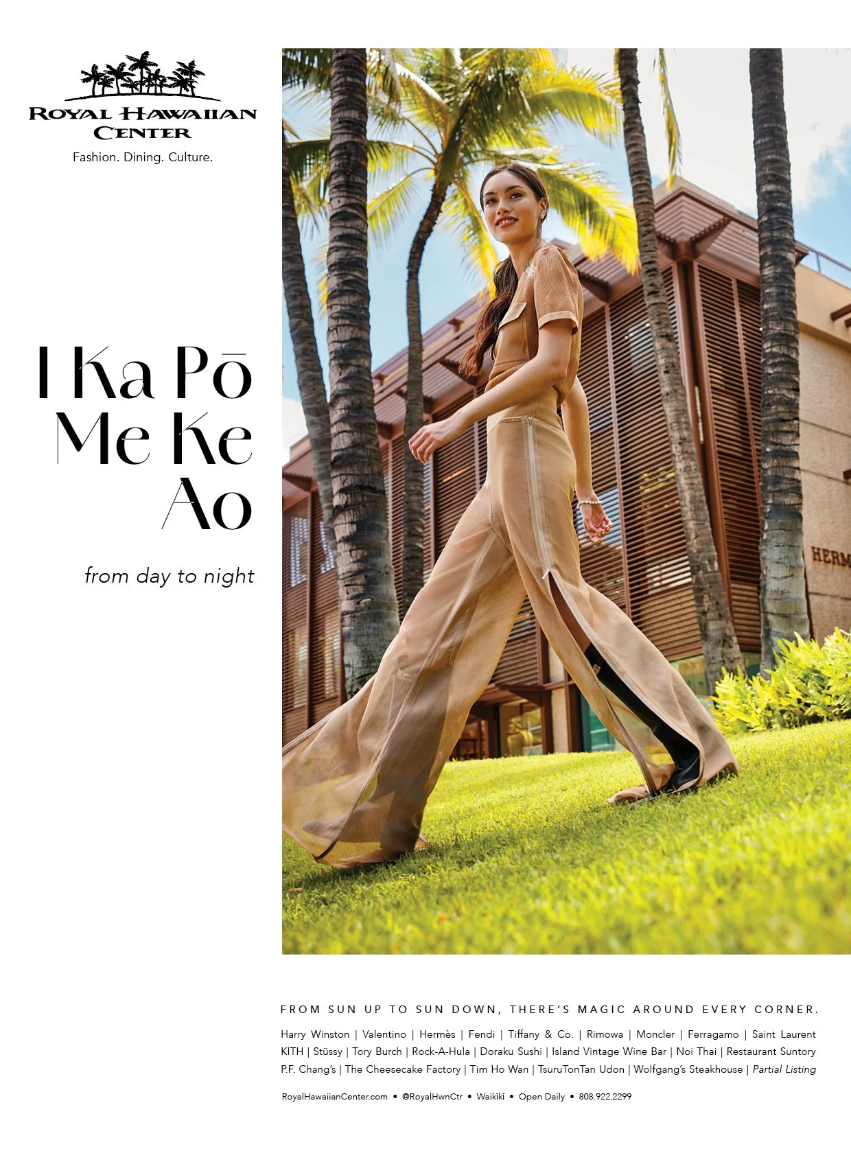 For nearly a decade, we've worked with this iconic cultural & shopping destination in world-famous Waikīkī, creating campaign after campaign that capture, through custom photography, both the world-class luxury and stunningly beautiful environments Hawai'i has to offer. From sun up to sun down, the magic of this paradise never fades — and neither does our commitment to respecting this gorgeous, ancestral place and the people we've come to consider our 'ohana away from home.